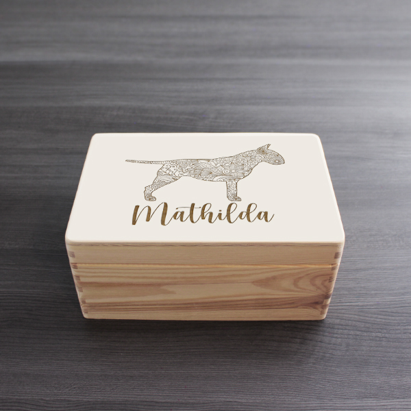 Preview: Bullterrier - Holzbox / Holzkiste - ORNAMENTED + NAME