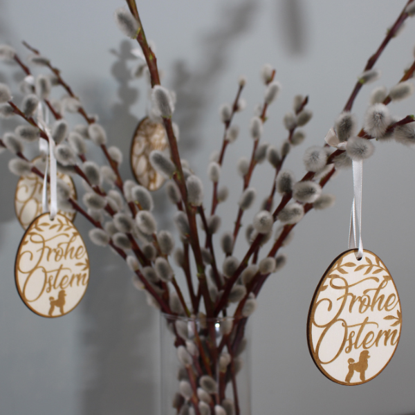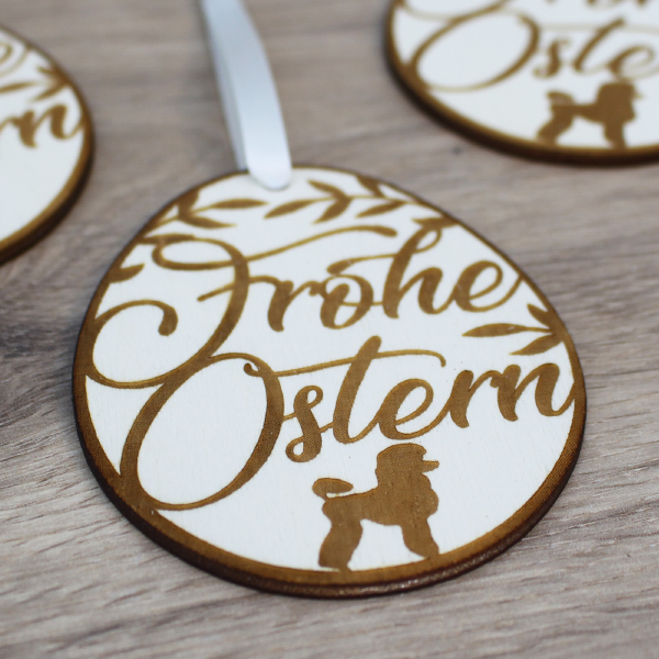Easter Decoration KING POODLE - " Frohe Ostern " - v1 - 8,5 x 6,8 cm - 5 pieces