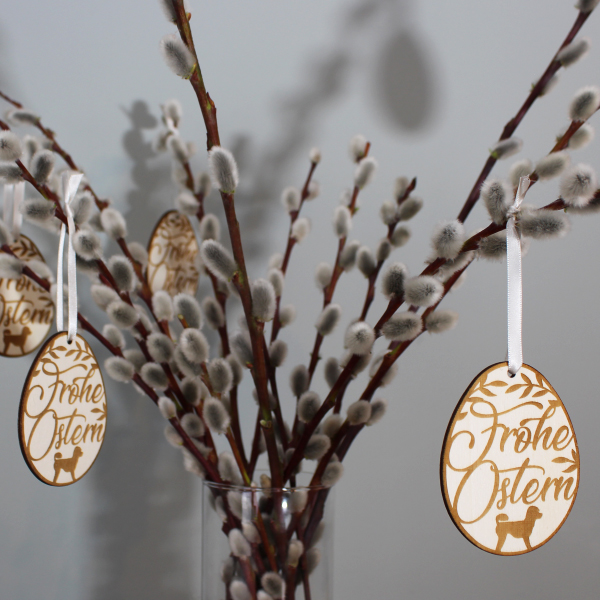 Easter Decoration - SMALL POODLE - " Frohe Ostern " - v1 - 5 pieces - 8.5 x 6.8 cm