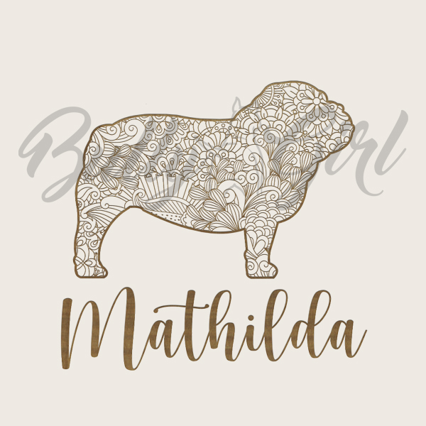 Englische Bulldogge - Holzbox - ORNAMENTED + NAME - Gr. S - ca. 30 x 20 x 14 cm | VARIANTE 1