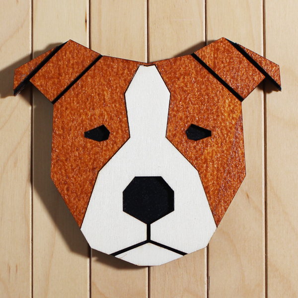 GEOMETRIC DOG HEAD - AmStaff - red / white - BIG - ca. 11,5 x 13,5 cm