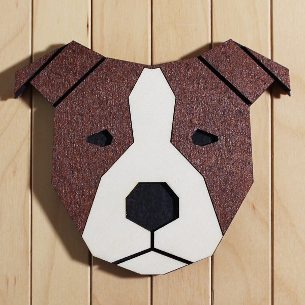GEOMETRISCHER HUNDEKOPF - AmStaff - braun / weiß - BIG - ca. 11,5 x 13,5 cm