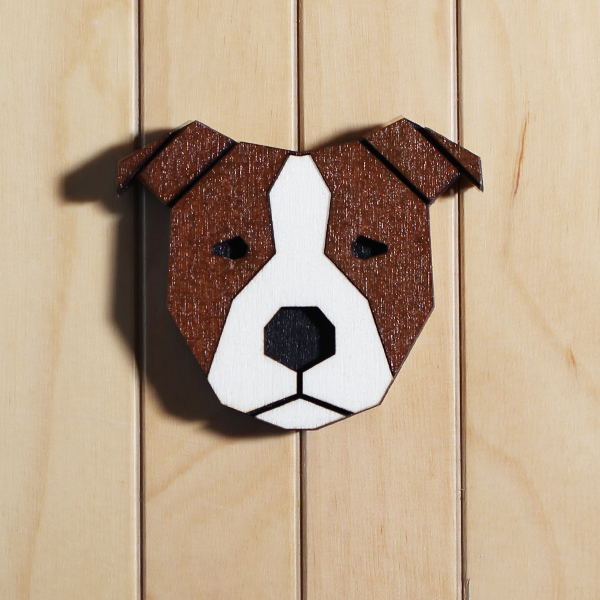 GEOMETRISCHER HUNDEKOPF - AmStaff - braun / weiß - BIG - ca. 5,5 x 6,5 cm