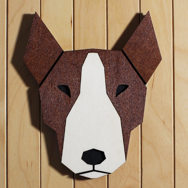 GEOMETRISCHER HUNDEKOPF - Bullterrier - braun / weiß - BIG - ca. 14,5 x 12 cm