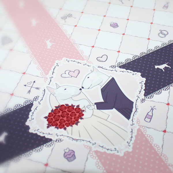 PREMIUM // Geschenkpapier Bullterrier - Hochzeit v1
