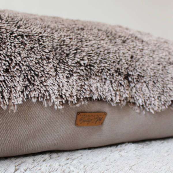 - Liegefläche (oben): Plüsch-Zottel-Stoff, Florlänge: 30 mm, Farbe: braun-beige (100% Polyester)