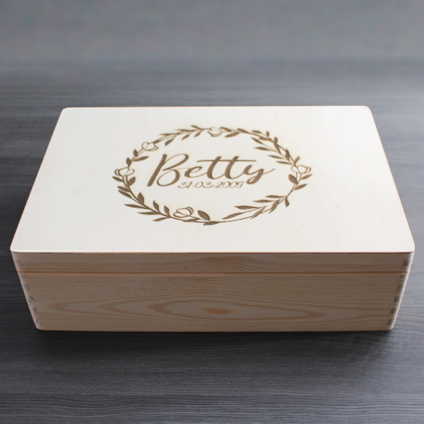 " NAME + DATUM " - Holzbox - BETTY STYLE - Gr. L - ca. 40 x 30 x 14 cm | VARIANTE 1