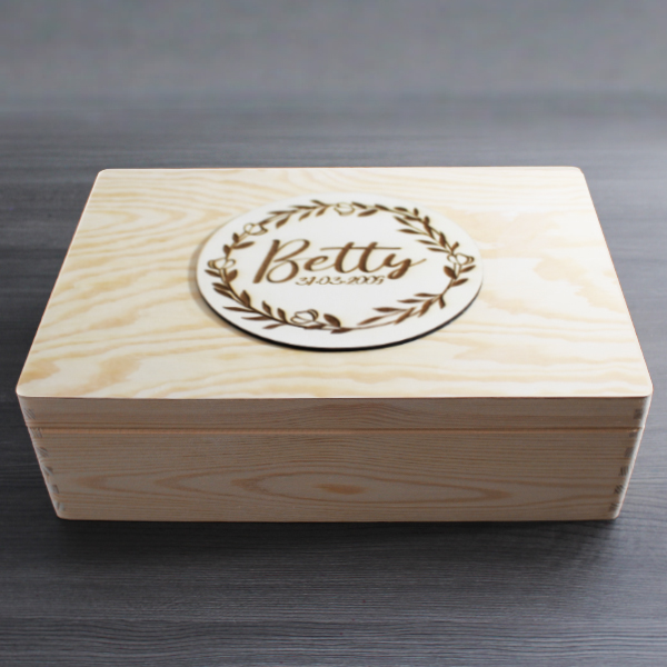 " NAME + DATE " - wooden box - BETTY STYLE - Size L - approx. 40 x 30 x 14 cm | VARIANT 2