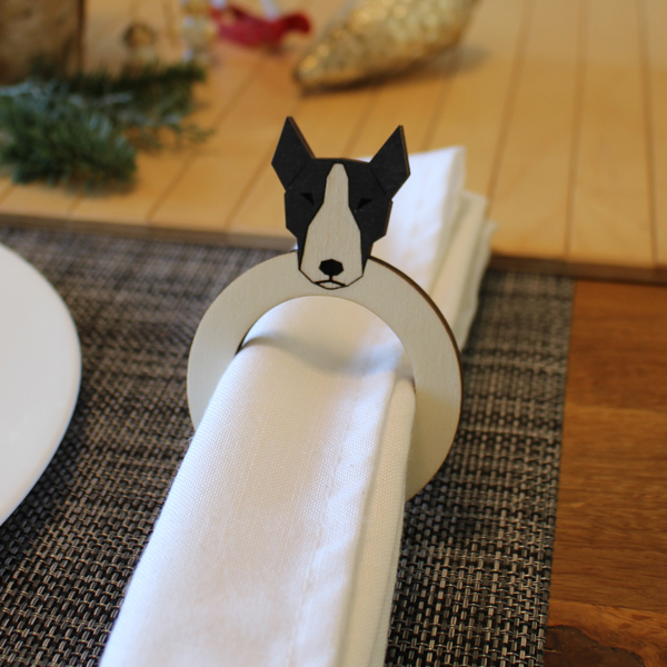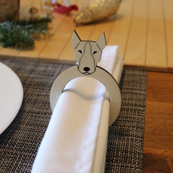 SERVIETTENRINGE - aus Holz 6mm - HUND - Bullterrier - 4er SET